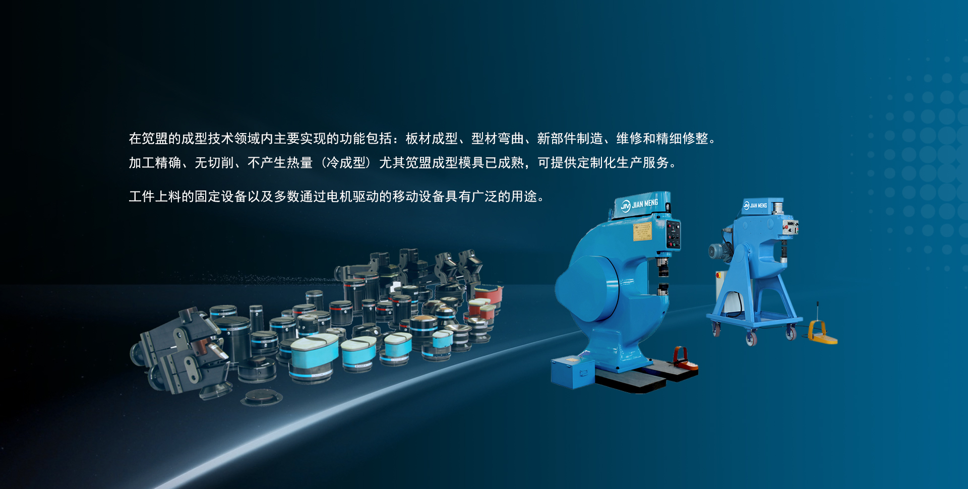公司主要生產制造:PF350異形曲面快速成形機,PF665雅高成型機,收邊機,放邊機,校形機,鈑金整形機,球面成形機,高速成型機,金屬整平機等設備...