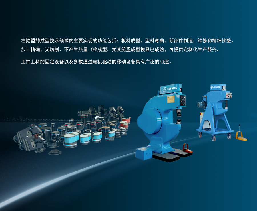 公司主要生產制造:PF350異形曲面快速成形機,PF665雅高成型機,收邊機,放邊機,校形機,鈑金整形機,球面成形機,高速成型機,金屬整平機等設備